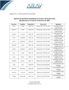 REPORTE DE DECISIONES NOVIEMBRE
